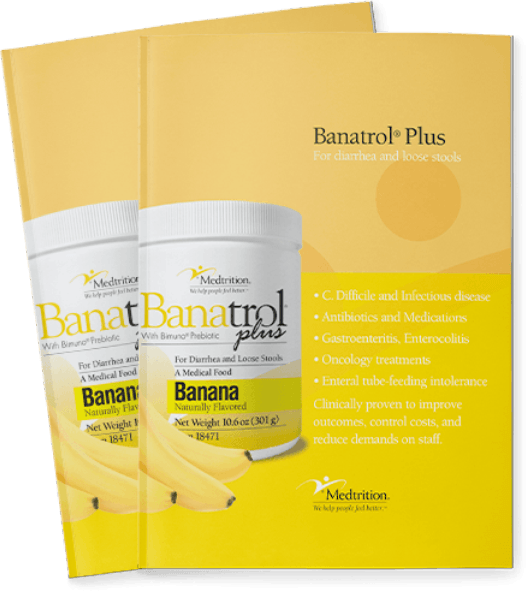Banatrol® Plus is a proprietary blend of banana flakes and a patented prebiotic. The pectin in bananas works to solidify stools by absorbing excess water in the colon. The prebiotic fuels the growth of beneficial bacteria in the intestines, which crowds out the bad bacteria and helps to reduce inflammation.